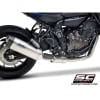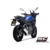 To ensure the best performance on all types of road and an overall lightening of the bike, in full compliance with the Euro5 homologation regulations, the SC1-S silencer was chosen, in line with the style of the bike: carbon fiber end cap, titanium body and laser marked SC-Project logo.