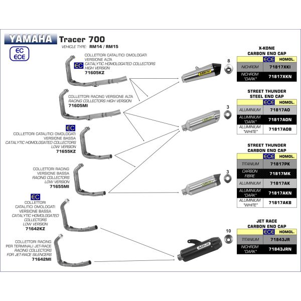 Yamaha MT-07 – Tracer 700 – Tracer 7 GT – Tracer 7 GT Arrow exhaust system 71817MK 71605MI 71605KZ