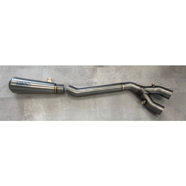 It is a titanium pro-race silencer with titanium link pipe, which eliminates the catalytic converter.