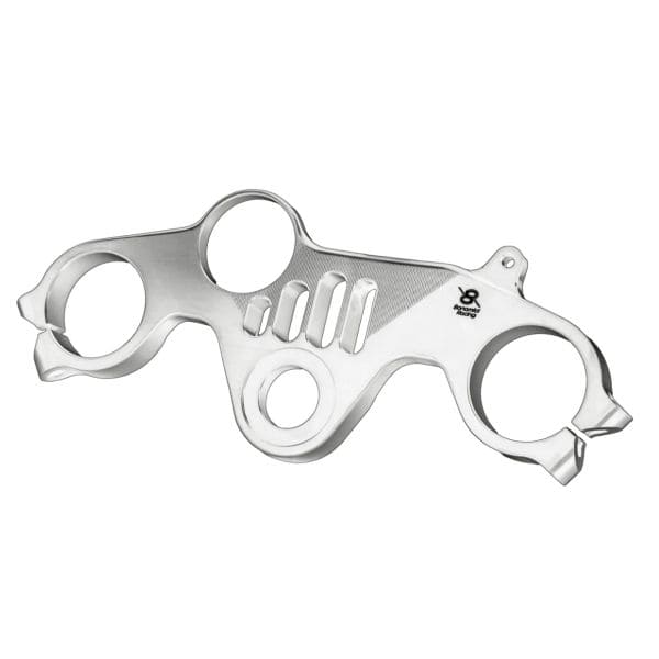 Upper steering plate completely machined from billet by numerical control machines (CNC) with 3D technology.