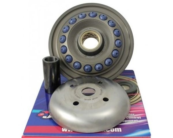 Complete variator kit for scooter consisting of variator body, bell, bushing, slider and rollers.