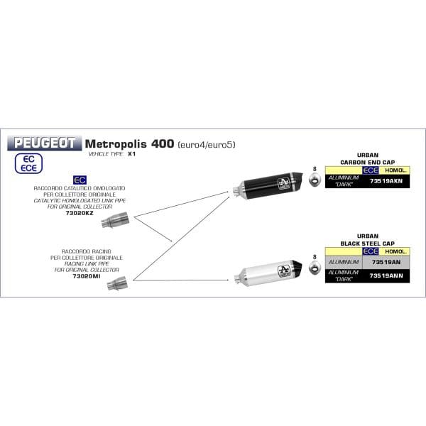 Arrow uitlaat voor de Peugeot Metropolis 400 2017 – 2021.