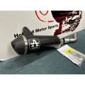 De uitlaat is van (zwart) aluminium en heeft een zwarte aluminium end cap.