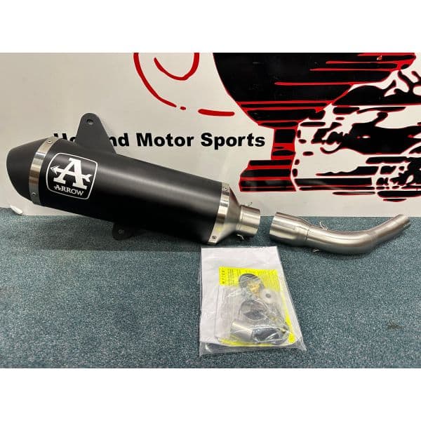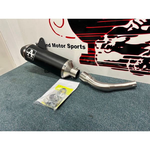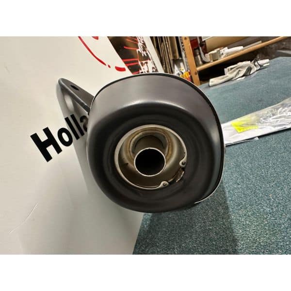 De uitlaat is van (zwart) aluminium en heeft een zwarte aluminium end cap.