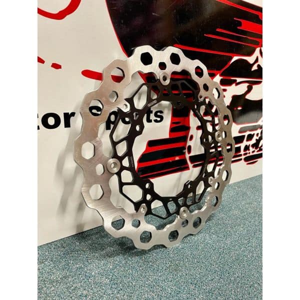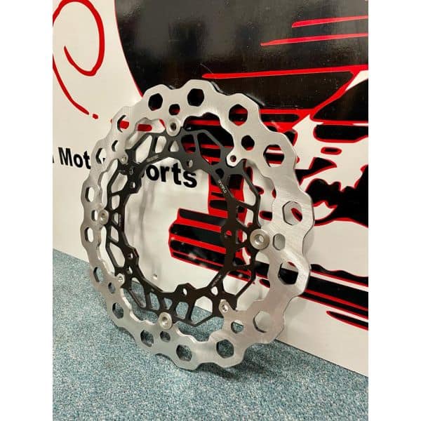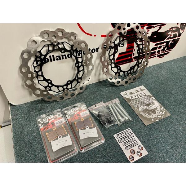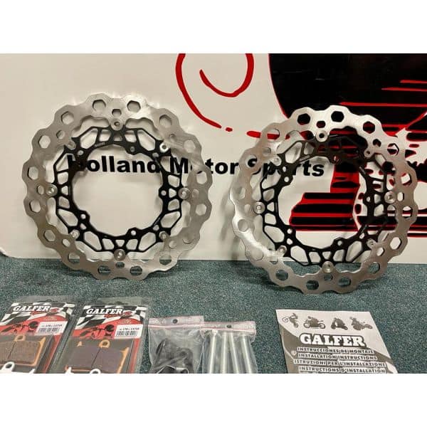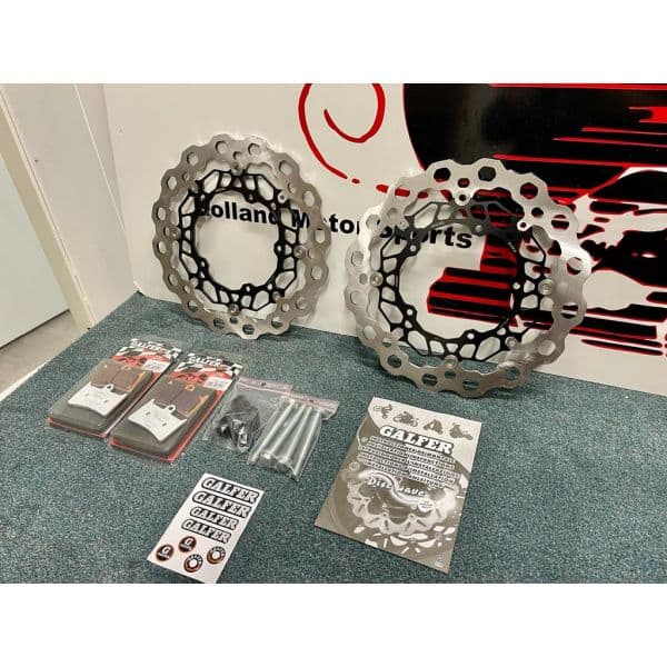 De Galfer wave voorschijven zijn een stuk groter dan de originele schijven (320mm)