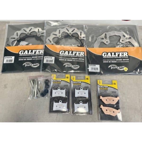 Optie 4: Complete kit met voor remschijven, achter remschijf, montage kit en voor en achter remblokken € 689.90