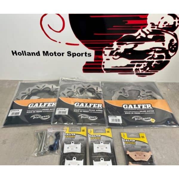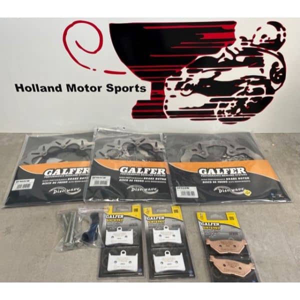 Optie 4: Complete kit met voor remschijven, achter remschijf, montage kit en voor en achter remblokken € 689.90