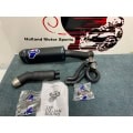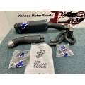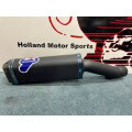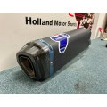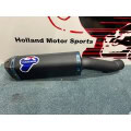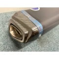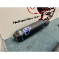 De demper is van titanium met een carbon end cap en heeft ook een EU goedkeuring.