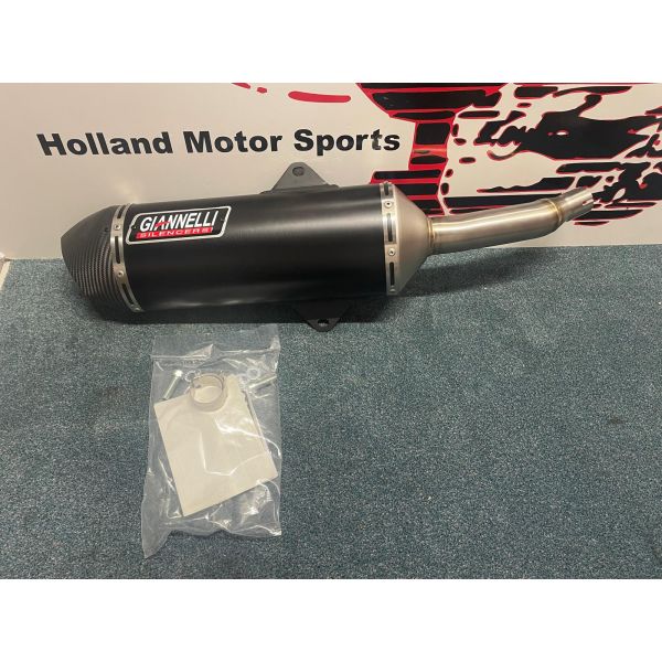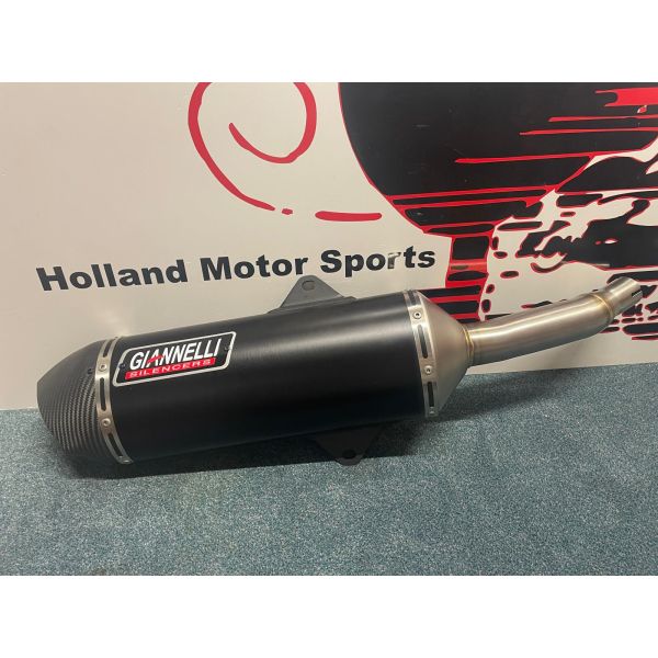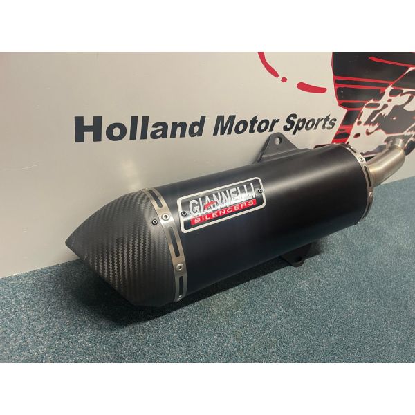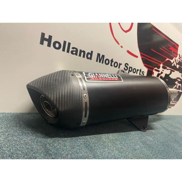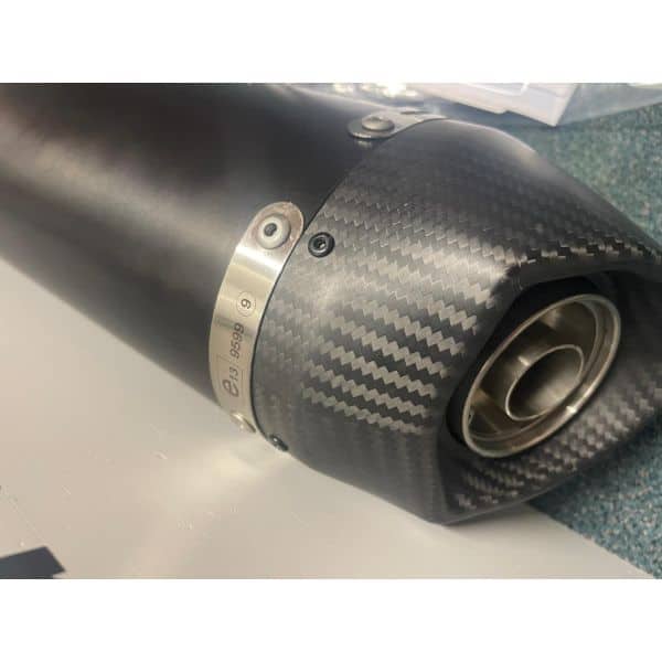 Dit is een aluminium zwarte uitlaat demper met een carbon eind kap.